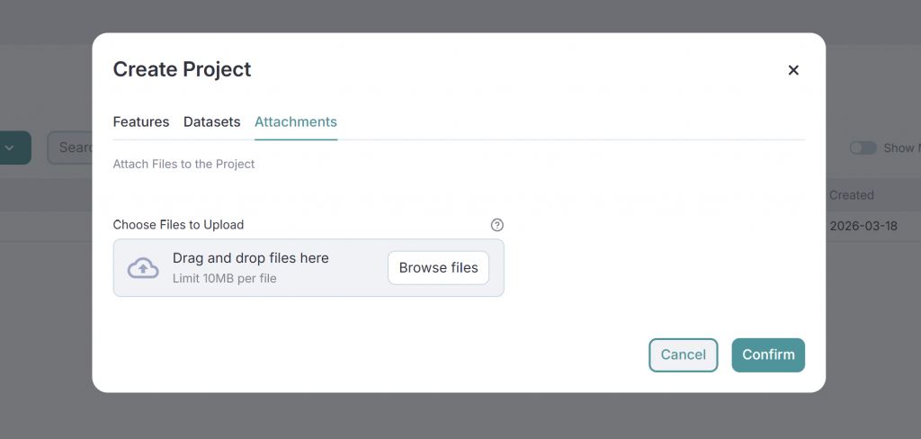 - Select the Datasets you want to include and upload any necessary Attachments.